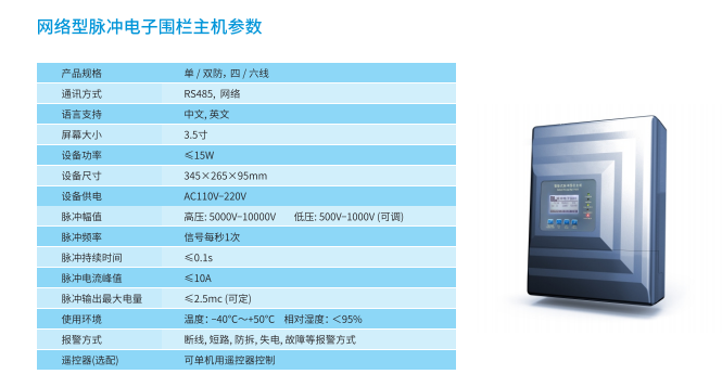 · 聯動報警 :系統集預警 、報警、電壓打擊,聯動於一身,既有實體防護,又有威懾入侵,同時具備報警聯動監控彈屏或者聯動探照燈功能 。