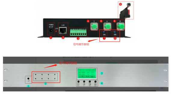 ②查看從終端防區包熔回來插入設備A、B光接口的尾纖是否有出光,正常應該要看到閃爍紅光。(這裏若A、B尾纖光纖接頭看不到回光則檢測尾纖熔接的光纖是否有回光 ,若有則重新熔接尾纖)
